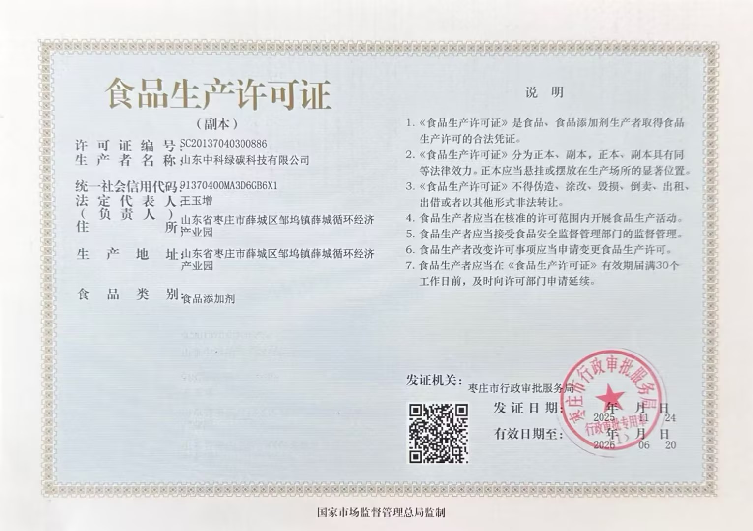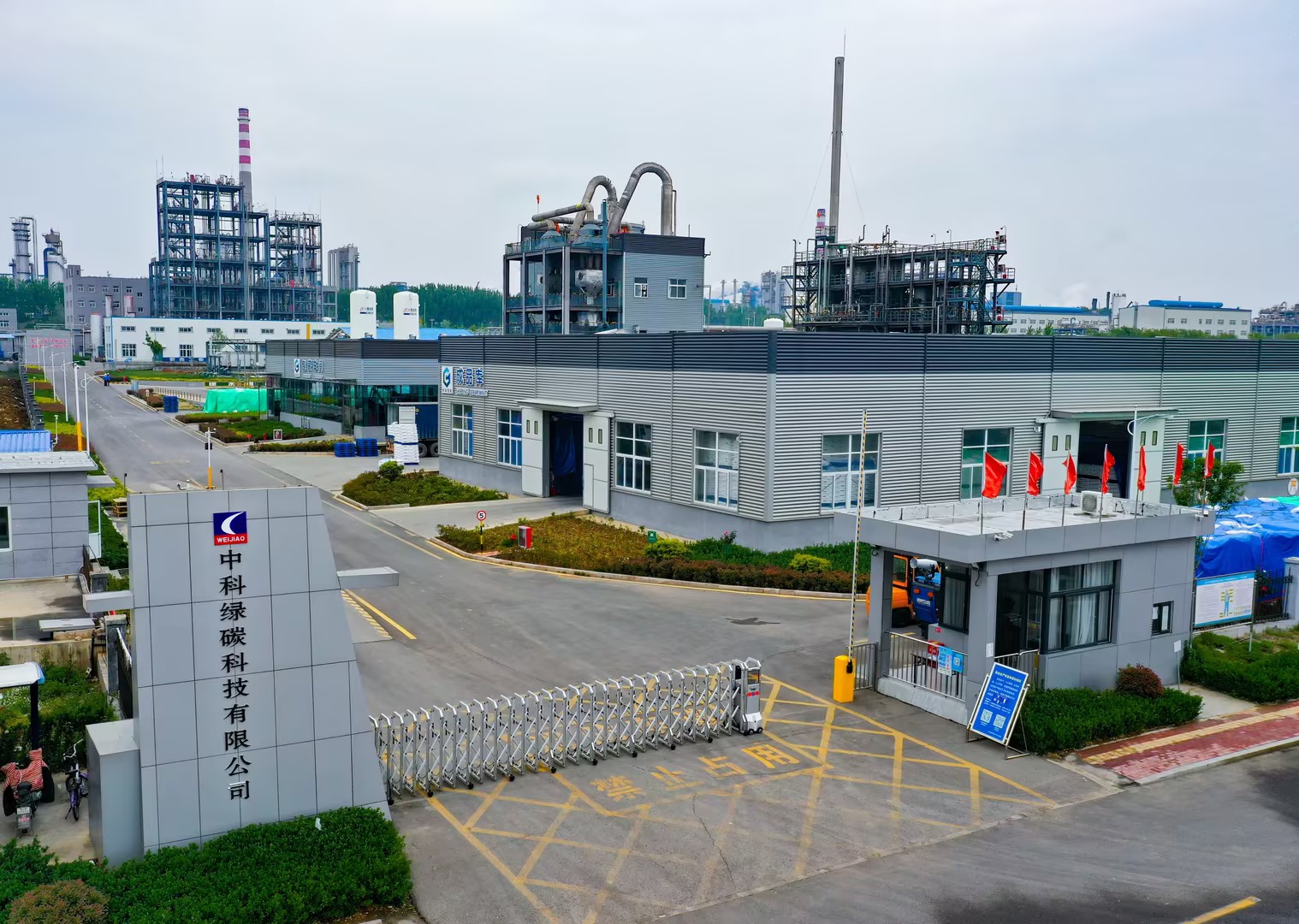 山東中科綠碳科技有限公司系上海中科綠碳化工科技有限公司全資子公司,由山東濰焦控股集團有限公司、上海中科奧凱企業管理有限公司共同出資組建。公司設有院士工作站,并依托中國科學院上海有機化學研究所自主研發的專有技術,專注于食品添加劑生產、綠色節能化學、化工新技術開發及化學工程項目工藝包研制,是國內以食品級碳酸氫銨生產、中試放大、技術服務為核心業務的國家級高新技術企業。 公司注冊資金 9800 萬元,占地面積約77 畝,CO2資源化利用合成食品添加劑產能15萬噸/年(原廠址濰坊振興焦化有限公司),通過回收園區內排放的CO2實現資源化利用,產品碳酸氫銨純度高、質量優良,每年可減少3000萬標方溫室氣體排放(相當于3萬輛家用轎車年CO2排放量),具有突出的社會效益與經濟效益。